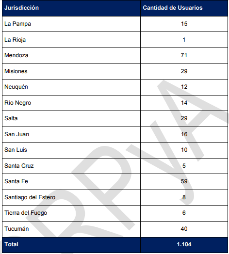 Para destacar, La Rioja registró solo un usuario, mientras que Formosa, registró 13 usuarios.