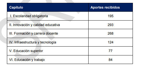 Innovación y calidad educativa más formación y carrera docente son los ítmes que más aportes recibieron de parte de la comunidad docente y en general.