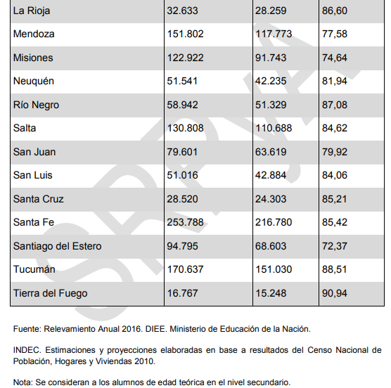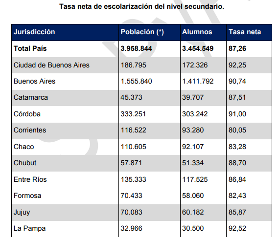 Datos - Argentinos cursando la escuela secundaria en el país