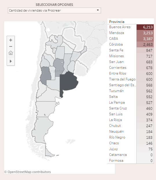 Respecto de las viviendas Procrear, Mendoza también aparece por debajo de provincia de Buenos Aires.