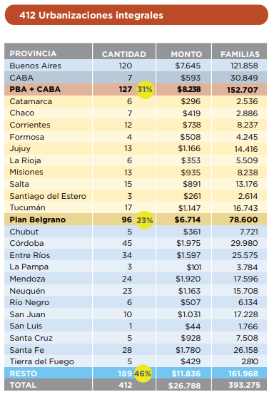 Otro tema importante es la urbanización, es decir, el paso siguiente a lo que es una vivienda o un barrio. Según el Plan Nacional de Vivienda, en esta asignatura Mendoza también ocupa un privilegiado tercer lugar, después de provincia de Buenos Aires y Córdoba en la asignatura "fondos".