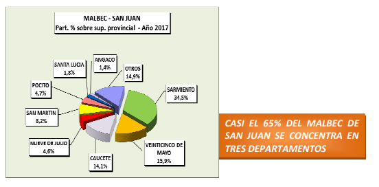 En San Juan los departamentos que más superficie registran de esta variedad son Sarmiento (34,5%) y Veinticinco de Mayo (15,9%), seguidos por Caucete y San Martín