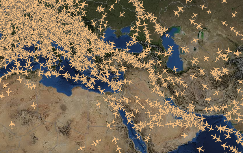 Mirá en tiempo real cómo los vuelos esquivan a Siria