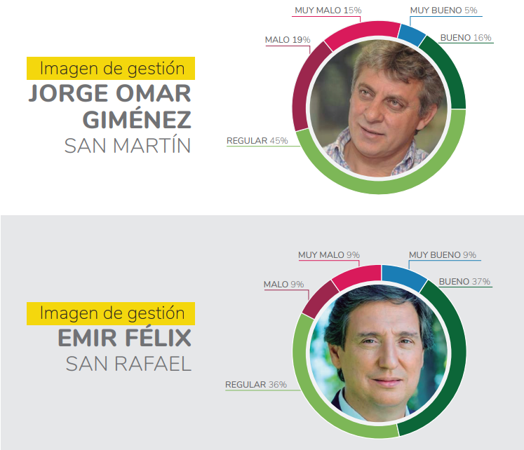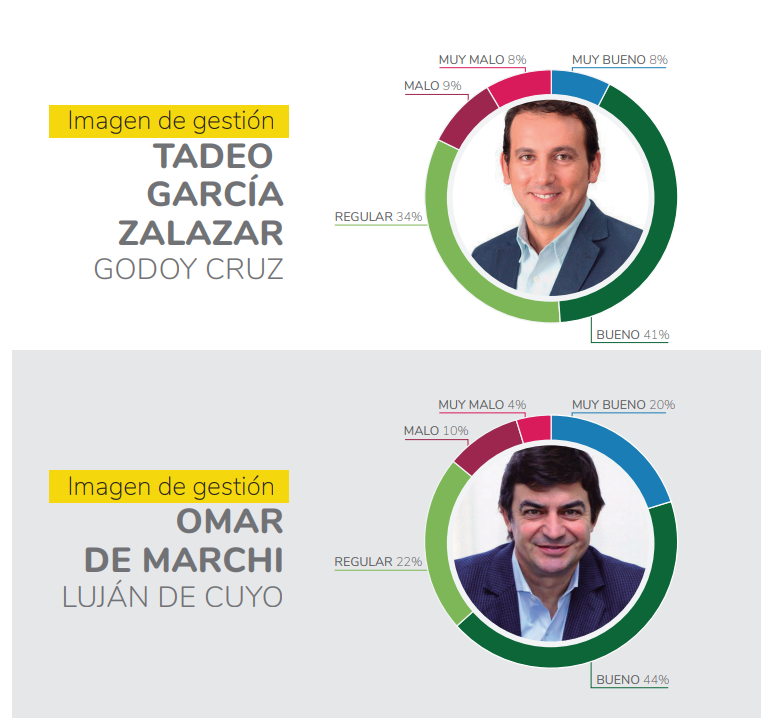 10- "La imagen de los intendentes es, en líneas generales, muy positiva. Los puntos más altos son las gestiones de Maipú y Luján de Cuyo, con respaldos cercanos al 65% y rechazos inferiores al 15%".