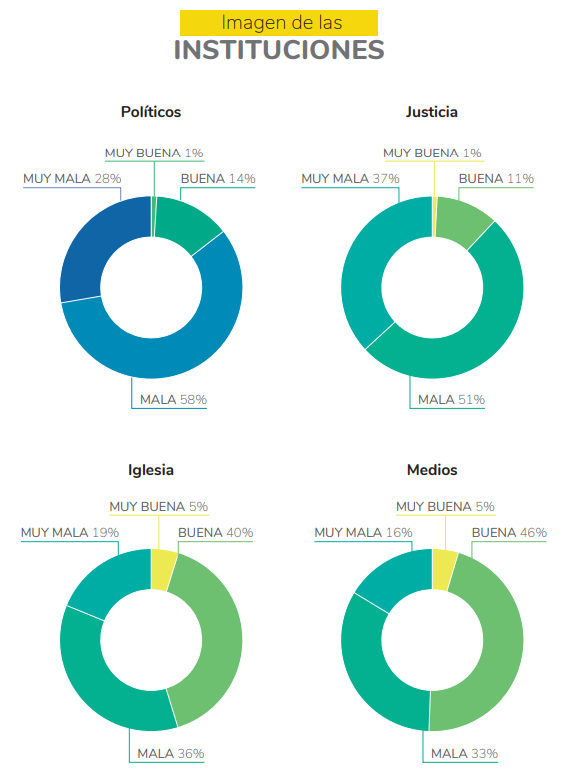 7-"La imagen de la clase política en general es altamente negativa, al igual que la de la Justicia. Los Medios y la Iglesia presentan mejores números aunque, en ambos casos, la imagen positiva no supera el 50%".
