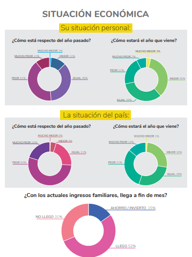 6- "Apenas el 15% de la población asegura estar en condiciones de ahorrar o invertir. Al mismo tiempo, el 31% asegura no llegar a fin de mes, lo que coincide con las estimaciones de pobreza de los organismos oficiales".