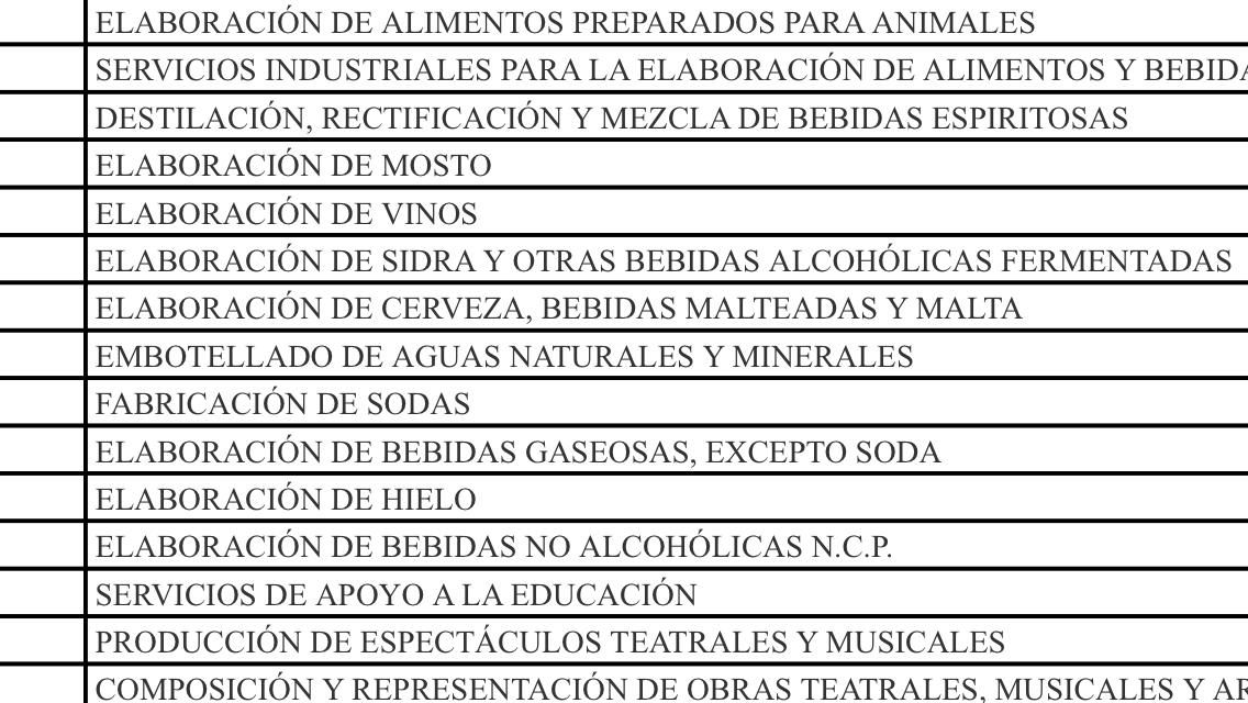 En la página web de AFIP, haciendo click aquí, pueden visualizarse todas las actividades incluidas.