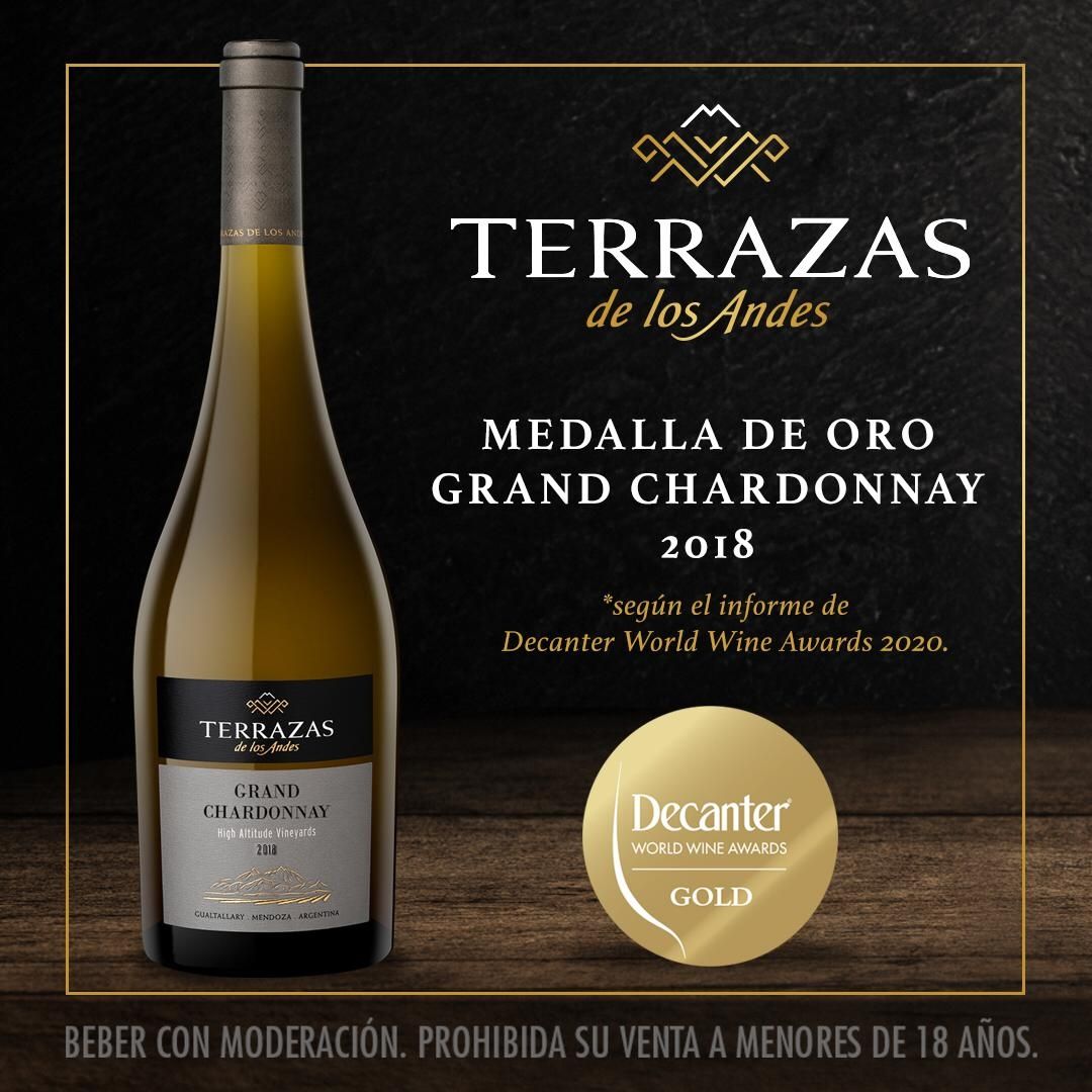 El informe de Decanter World Wine Awards 2020 ha reconocido al vino Terrazas de los Andes Grand Chardonnay 2018 como el mejor vino blanco de Argentina, marcando un nuevo hito dentro de la historia de la bodega, pionera en la elaboración de vinos de altura. En esta oportunidad obtuvo la medalla GOLD de Decanter World Wine Awards 2020 –uno de los concursos de vinos más grandes y prestigiosos del mundo-, que lo reconoció con 96 puntos como un vino excelente, muy complejo y de mucho carácter.