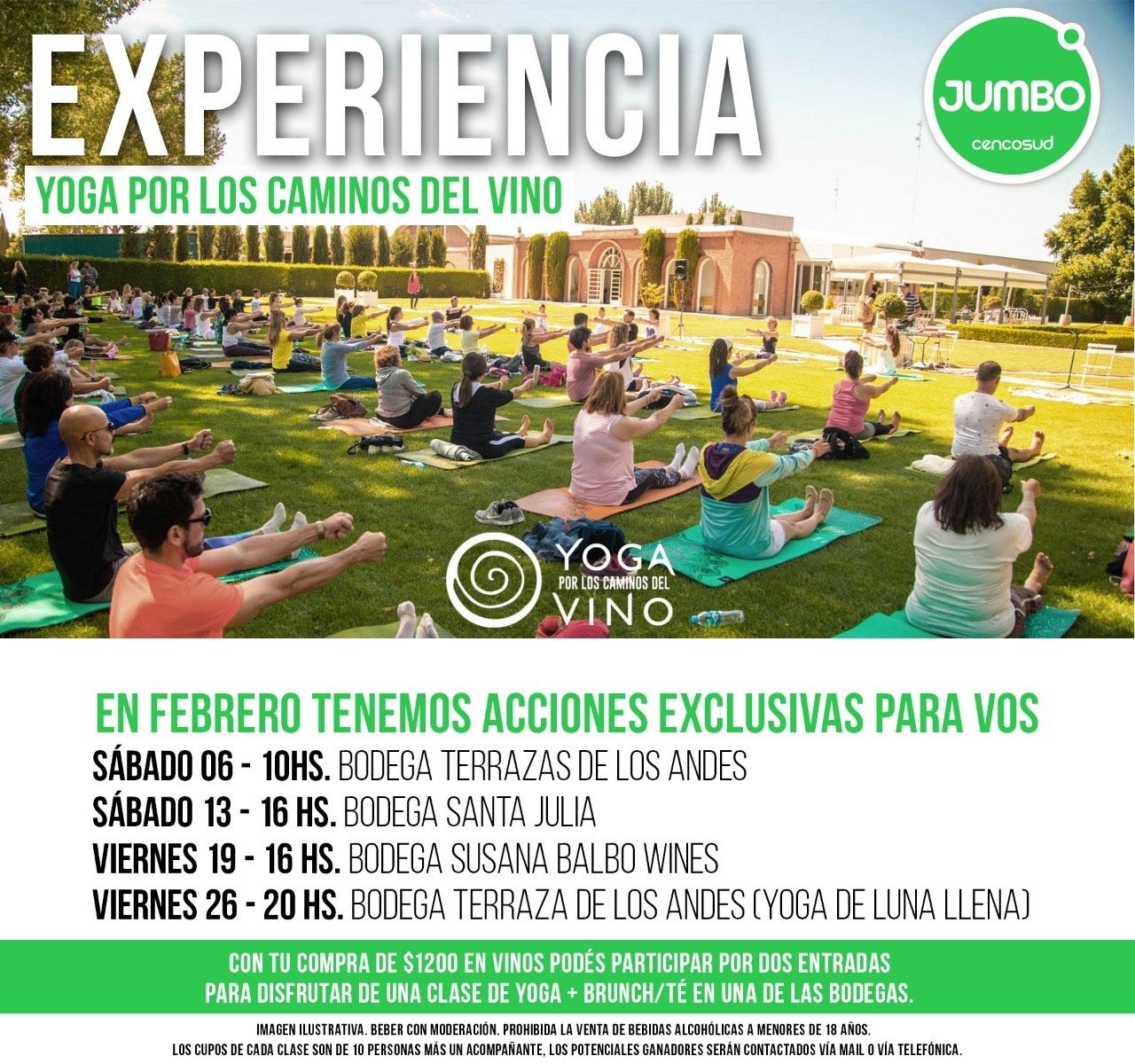 Durante el mes de febrero de 2021, Jumbo ofrecerá sesiones exclusivas en el circuito “Yoga por los Caminos del Vino”. Todos los clientes del supermercado y adherentes al programa “Jumbo Deli & Wine” tendrán la posibilidad de disfrutar de este excelente plan.