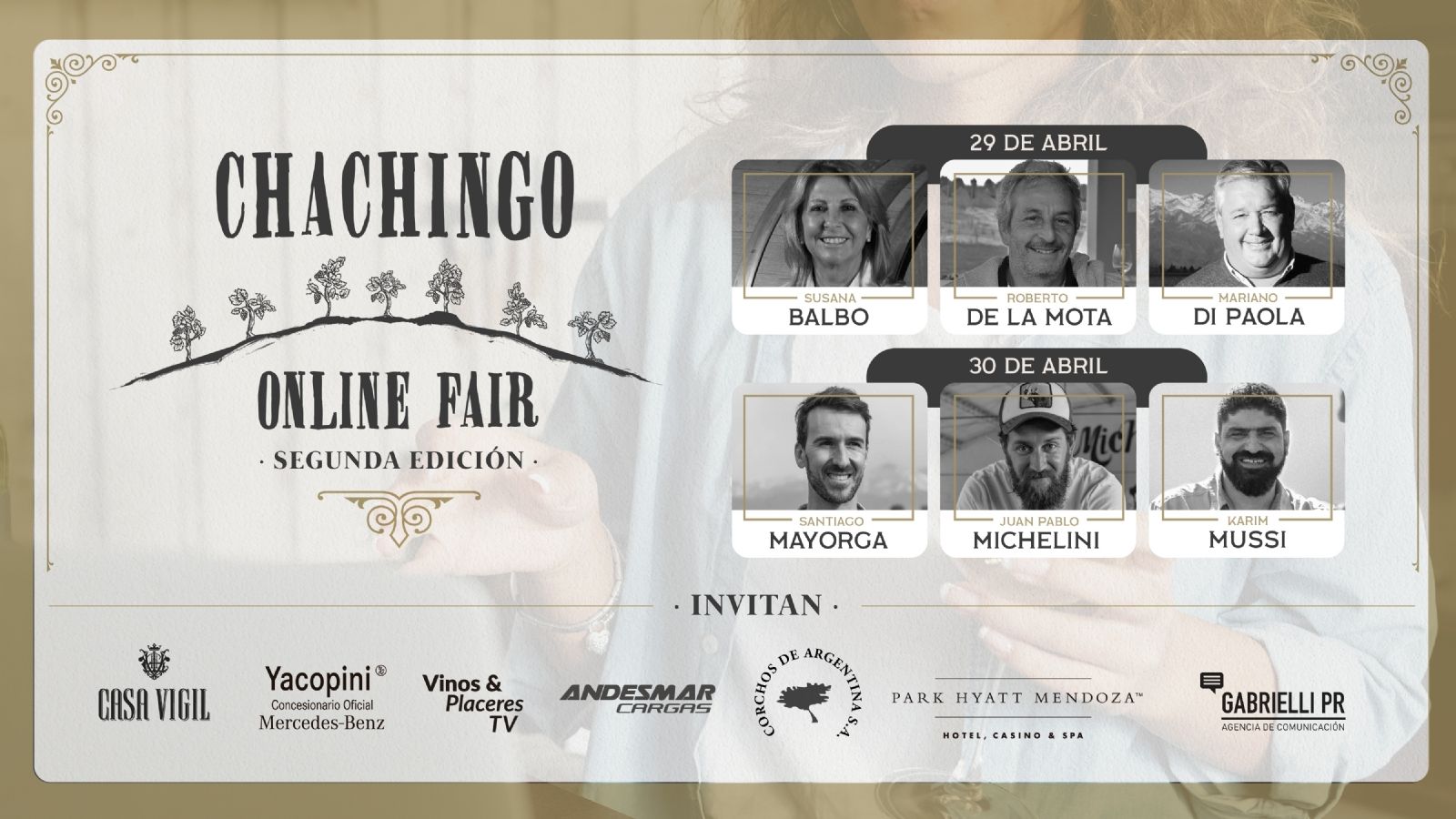 La segunda edición virtual del evento contará con la presencia de los destacados: Susana Balbo, Roberto De La Mota, Mariano Di Paola, Santiago Mayorga, Juan Pablo Muchelini y Karim Mussi. Una de las características más destacadas de la feria de Chachingo es el hecho de poder dialogar en primera persona con los grandes protagonistas de la industria del vino de Argentina y este año ese ítem continuará funcionando.