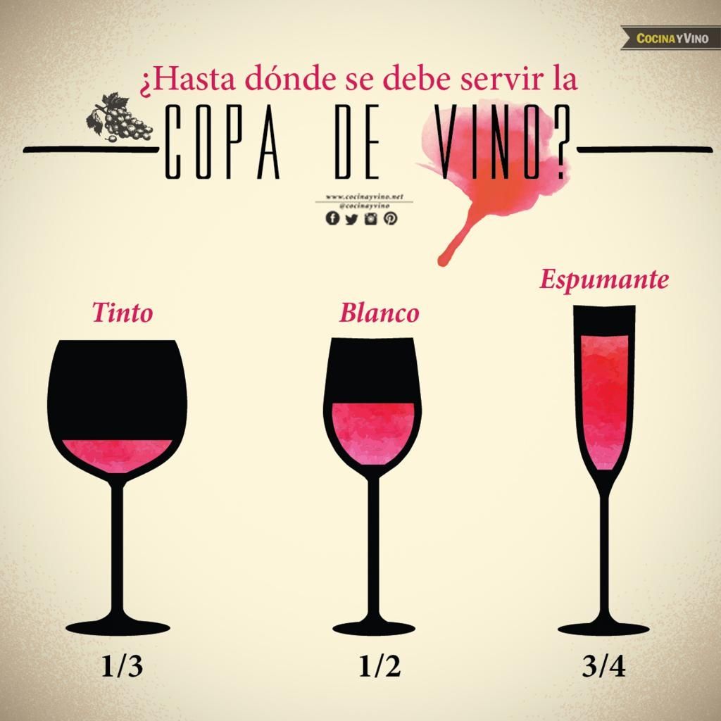 En cuanto al vino blanco, se recomienda servir poca cantidad, aunque eso haga que deba rellenarse la copa más seguido, pues es importante que se mantenga el frescor ideal del mismo, y no se pierdan facetas de la experiencia. Con respecto al vino tinto, allí si podemos servir unos dos tercios, aunque hay que tener en cuenta el consejo anterior: si la copa es muy grande, un tercio puede ser suficiente.