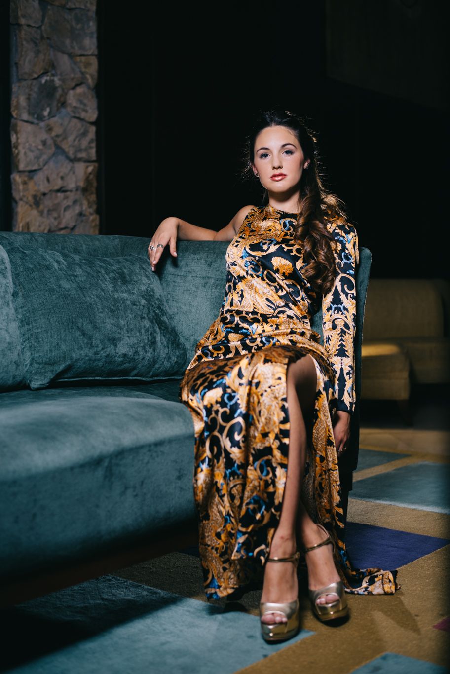 Mono en nude con dorado (Moi La Femme) y vestido blanco completamente bordado en lentejuelas con brillos plata y dorado (Moi La Femme).