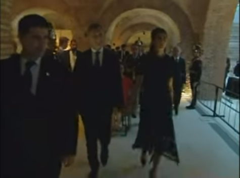 GALA DEL COLÓN En este caso ya no hay protocolo, sólo código de vestimenta que, no era gala sino cocktail,por eso los hombres no estaban de smoking; pero al ser Primera Dama estuvo bien que usara largo. Su vestido era de la marca argentina Menage A Trois, de crepe color crudo, con un tajo en el frente. Para darle forma a la silueta eligió un cinto con detalles de metal de Zanotti. En este caso el maquillaje fue acentuado, aunque siguiendo su estilo de sobriedad. Además cambió el peinado a una media cola o recogido.