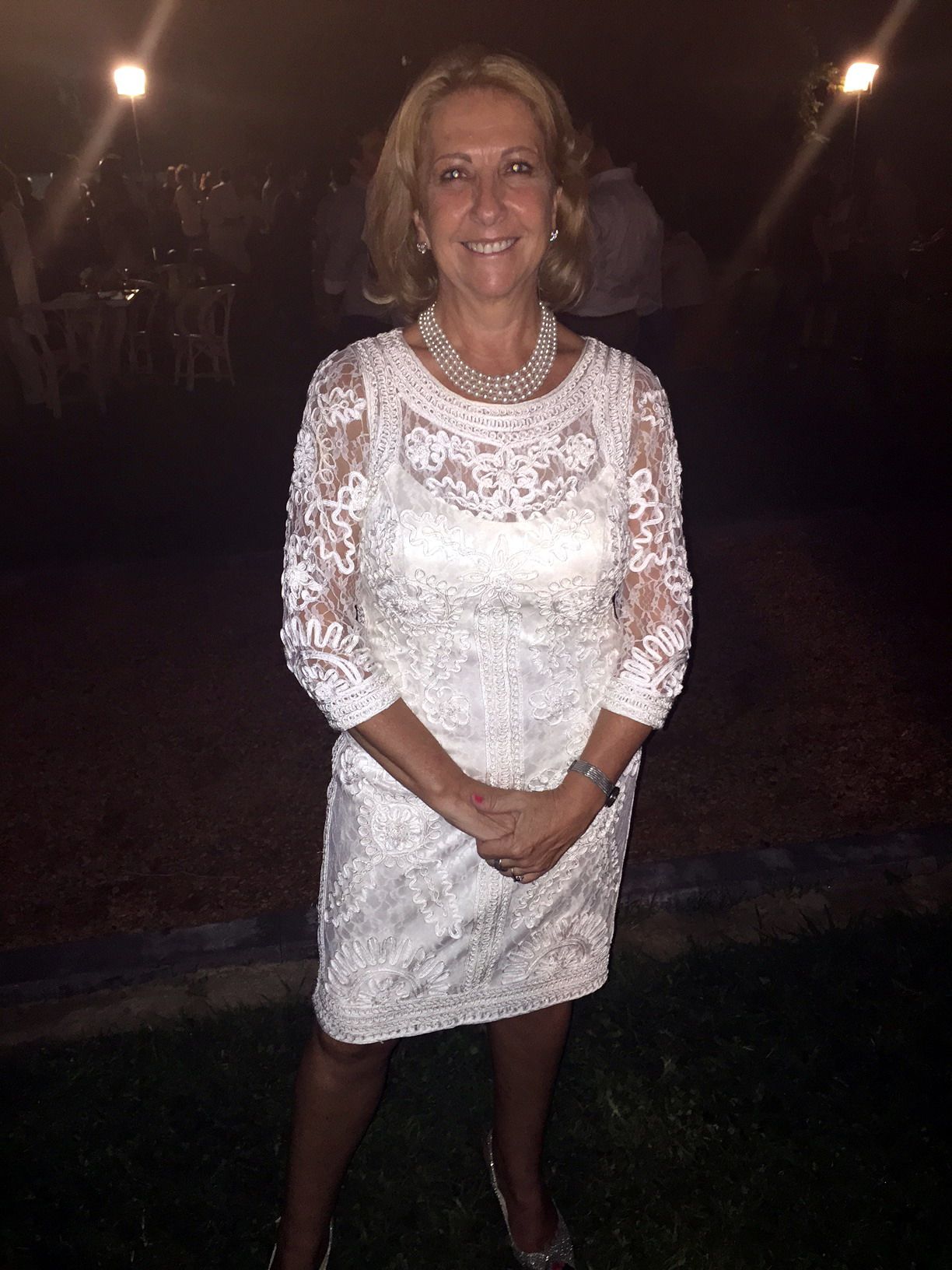 Y su look total white. Original y muy sofisticada.