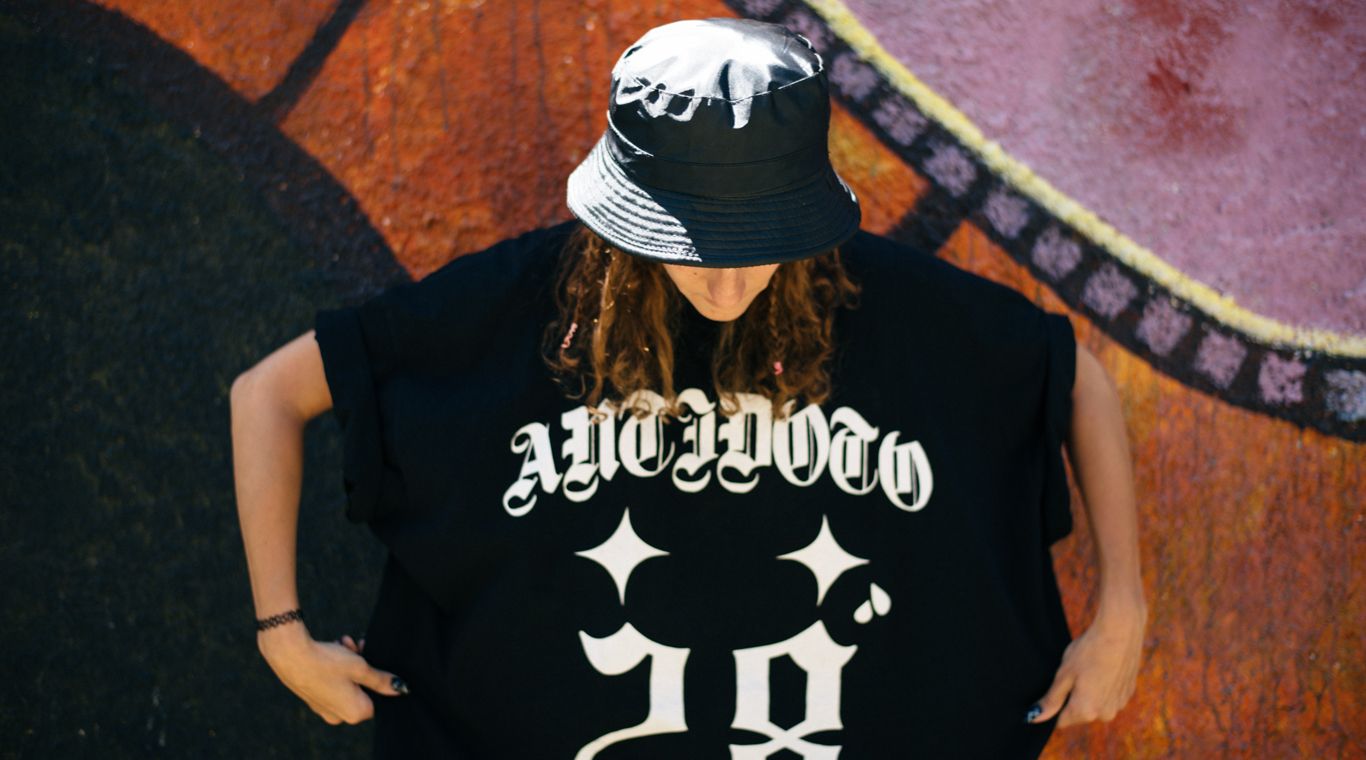 Vestida enteramente de negro, con una remera oversize de antídoto28 –marca que comparte con su novio- Flor nos recibe en la casa de su mamá durante su visita de tres semanas a Mendoza, donde aprovechará para hacer ferias y dar a conocer su marca. La mesa del comedor está invadida por sus creaciones, y a medida que charlamos vamos adentrándonos en la visión cósmica y esotérica detrás de Cosmic Warrior.