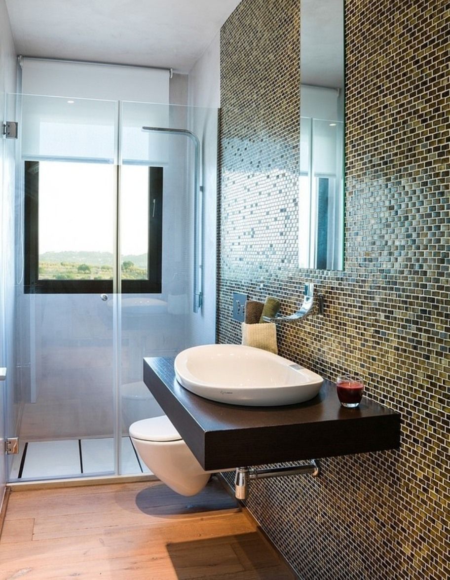 Utilizar mamparas de cristal para separar la ducha y evitar salpicaduras. Las separaciones de cristal no restan luz ni crean divisiones.