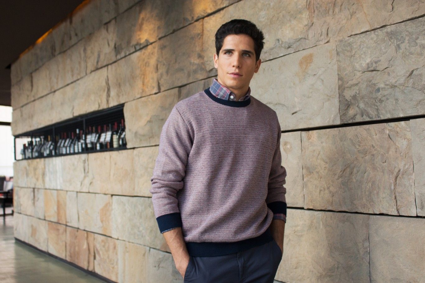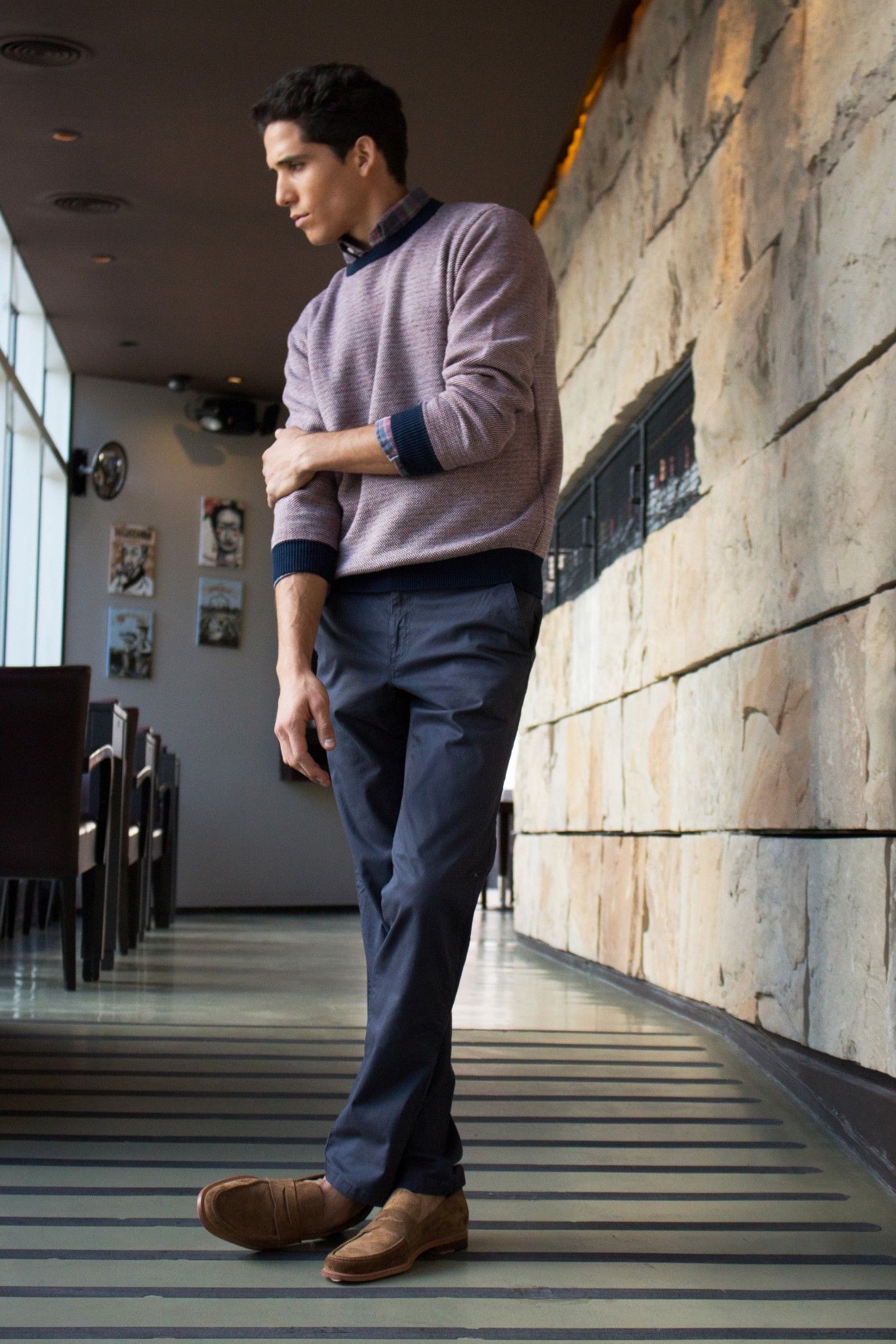 Los fines de semana, para el relax, hay jeans, camisas leñadoras, sacos de corderoy y camperas súper abortadas para él.
