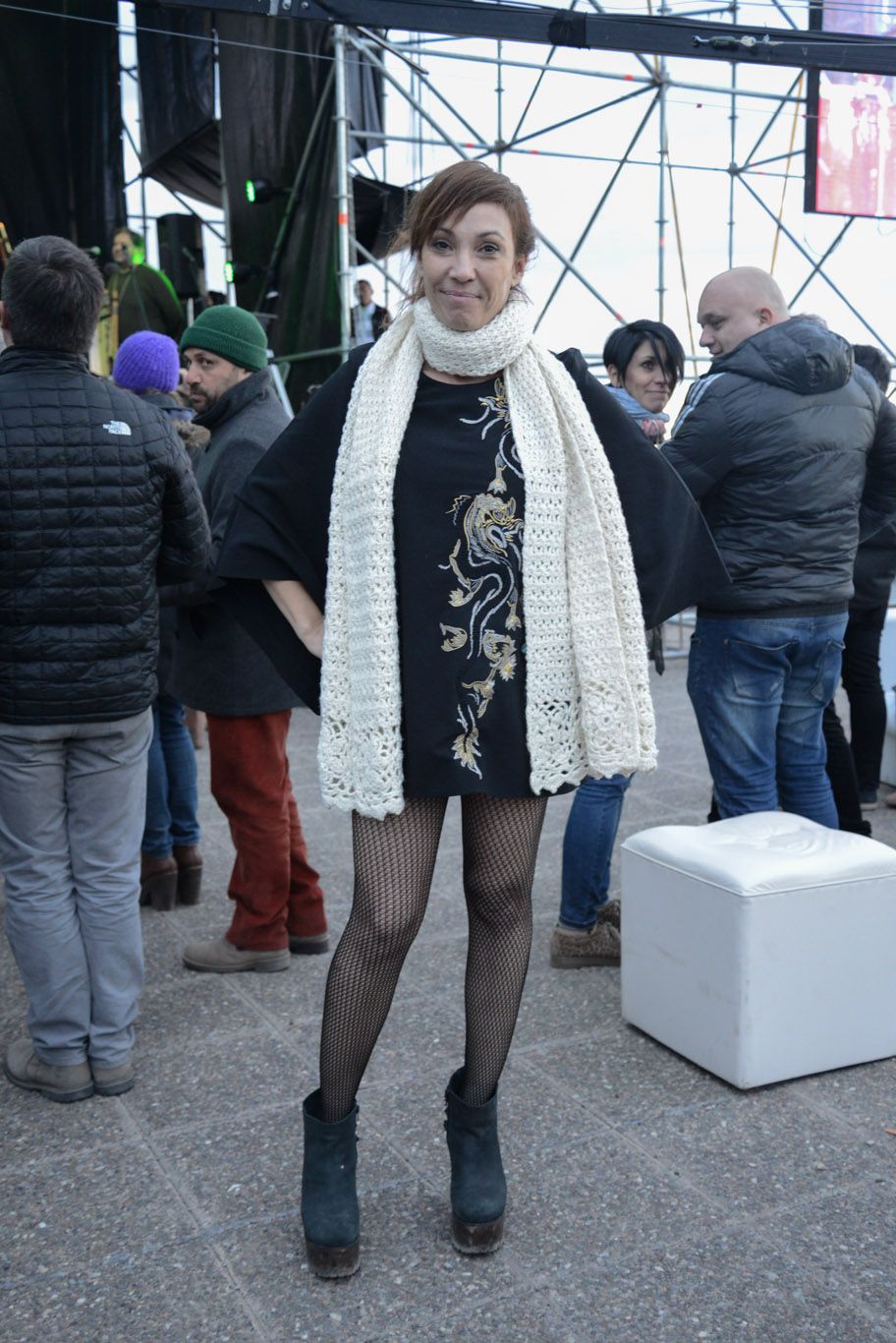 Estaba apropiada, con el clásico vestido corte A, más medias opacas y plataformas. Un clásico en los recitales al aire libre, ella conoce de rock. No me mató pero la admiro tanto que no le pido más. Y si, la bufanda tejida queda rara, pero con el frío que hacía todo valía para zafar. ☆☆☆☆