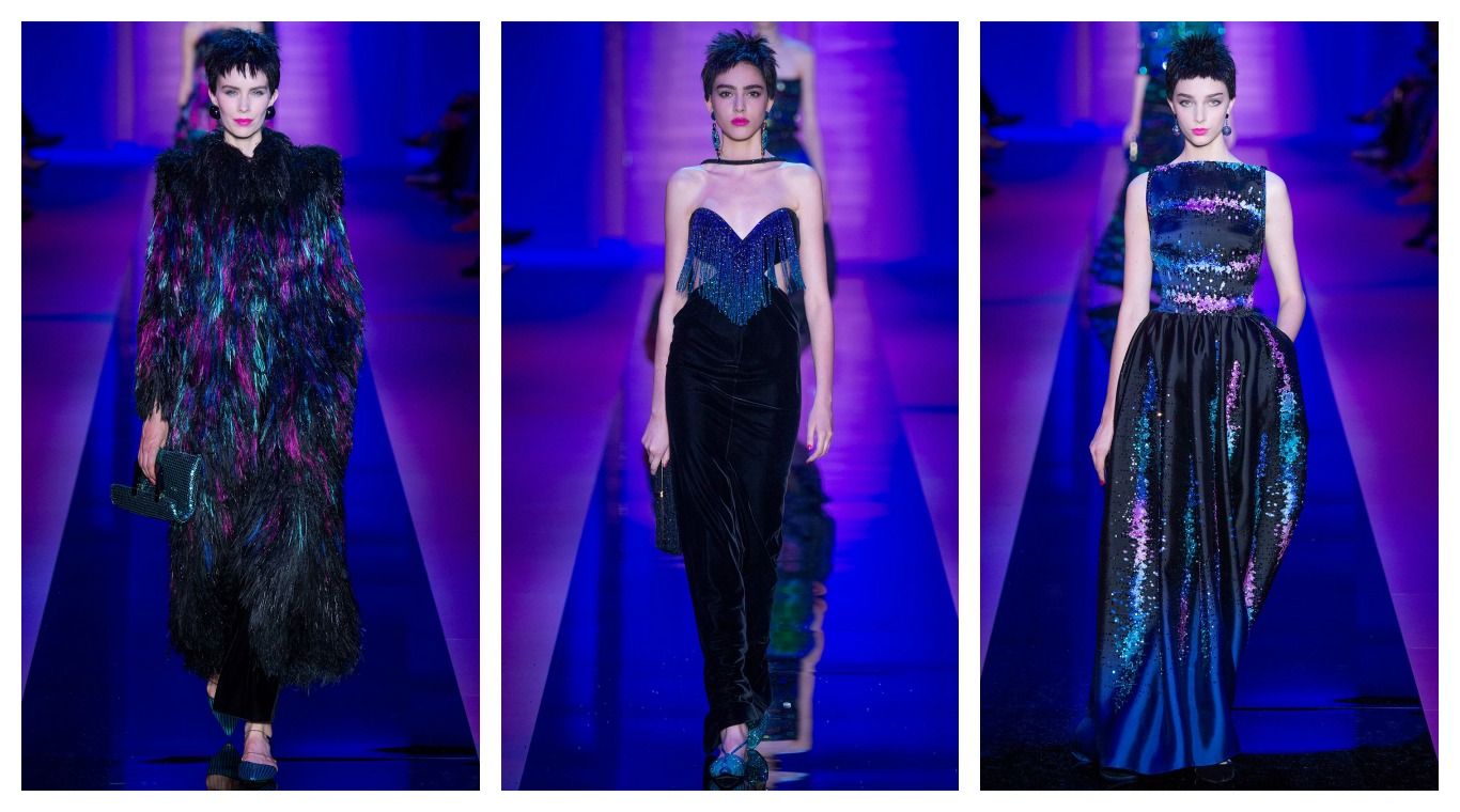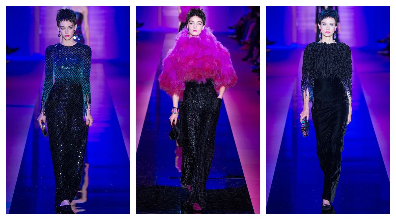 Las texturas de las prendas mostradas por Armani Privé fueron lo primero que captaron nuestro ojo: escamados con lentejuelas, pelo, lanilla y brillos, entre otros, arrasaron la pasarela en diseños que combinaban la discreción y la clase con un lujo rebosante, presente principalmente en los detalles.