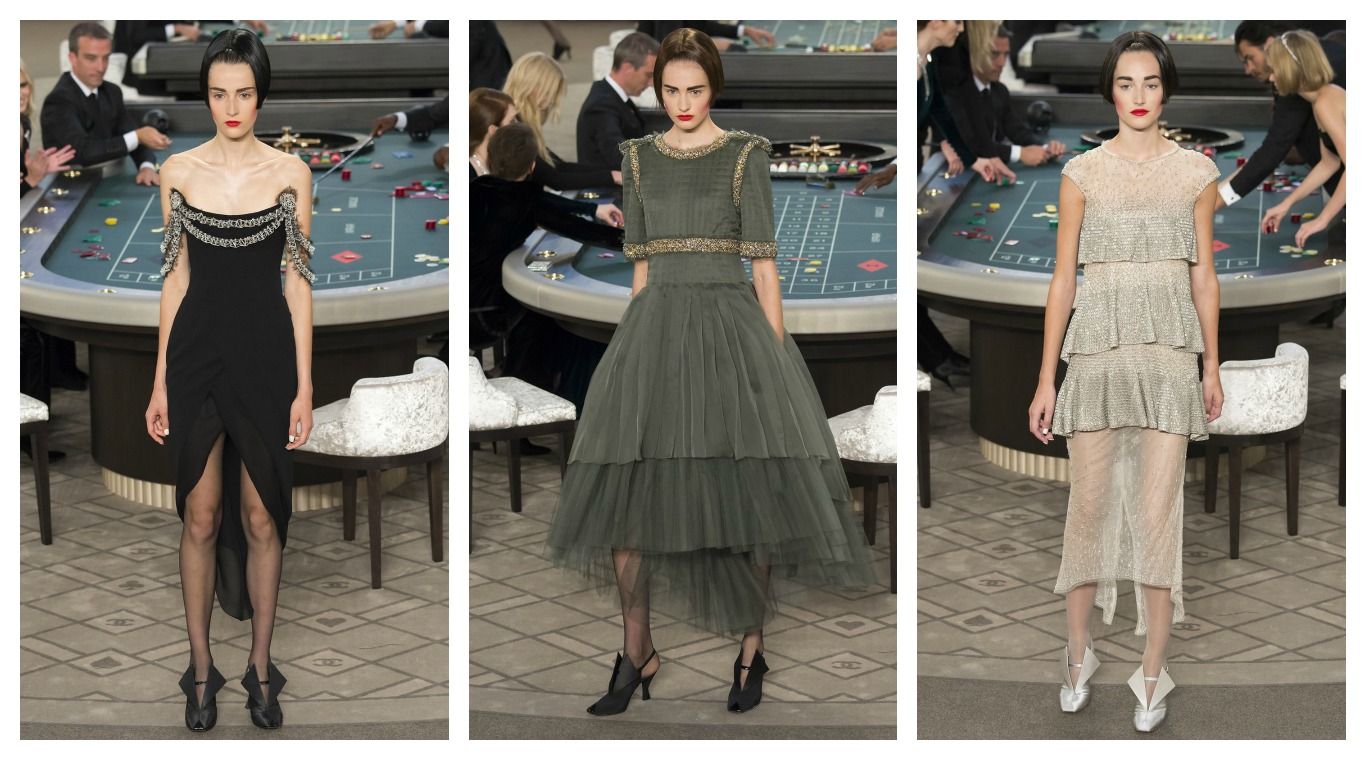 Hablando de edgy, nadie sabe hacerlo mejor que el káiser Karl Lagerfeld. La pasarela de Chanel, en la que se celebró a su cercle privé con un casino personal mientras las modelos desfilaban, fue la justa combinación de osadía y dulzura, como demostraron los etéreos vestidos en colores neutros con volados, tules y embellishments de pedrería combinados con zapatos más "duros" y de inspiración masculina.
