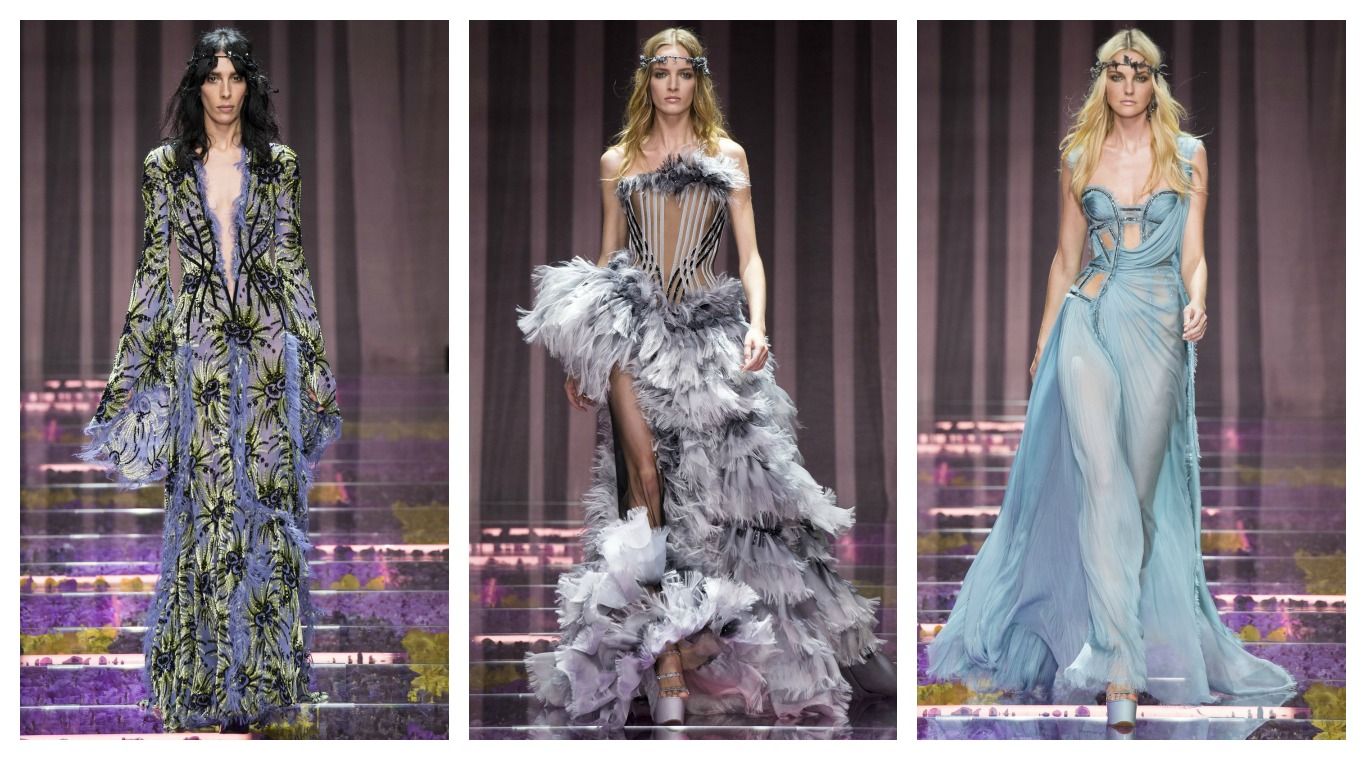 Comandada por la legendaria Donatella Versace, la última colección de la icónica marca italiana parece sacada de un provocativo cuento de hadas, con ciertas reminiscencias a Games of Thrones y mucha, mucha sensualidad. Los motivos geométricos, los cutouts y los tajos vertiginosos siguen teniendo fuerte presencia, pero esta vez suavizado un poco con un estilo etéreo y femenino.