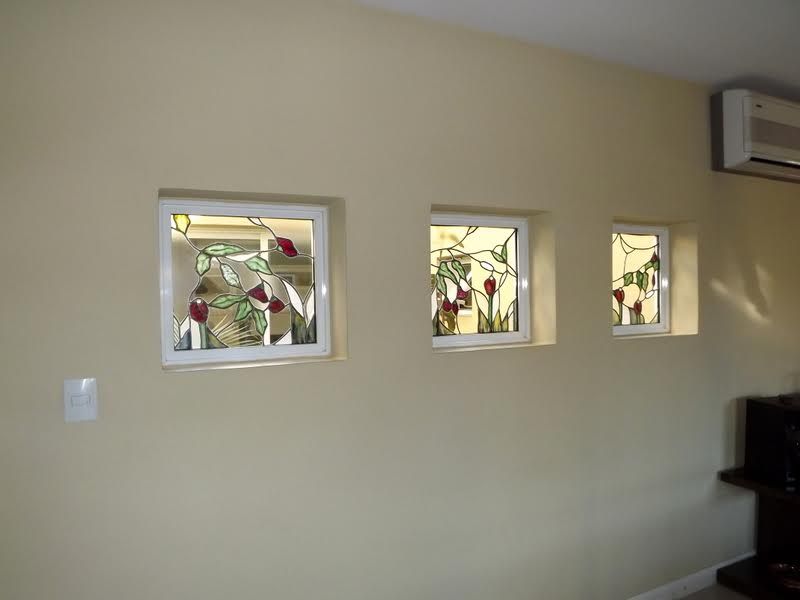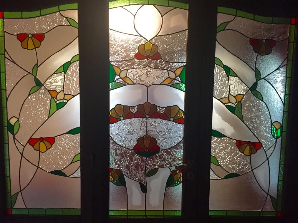 -En mi reciente exposición en La Bolsa de Comercio el crítico de arte Andrés Cáceres, dijo: “ ….Su obra se destaca por la línea, dando cuenta de su capacidad dibujística, a lo que suma una gran voluntad de trabajo y una obsesión perfeccionista. No deja nada librado al azar. Sus piezas transmiten armonía, serenidad, alegría de vivir, espiritualidad y la grata calidez que posee su propio espíritu.” Trabajo encargado por un matrimonio joven de Rivadavia, son 3 hojas, 3 puertas que conforman este hermoso vitraux. Las ventanitas que rodean este patio de luz, actúan como una sola obra que se va completando en los diferentes planos.