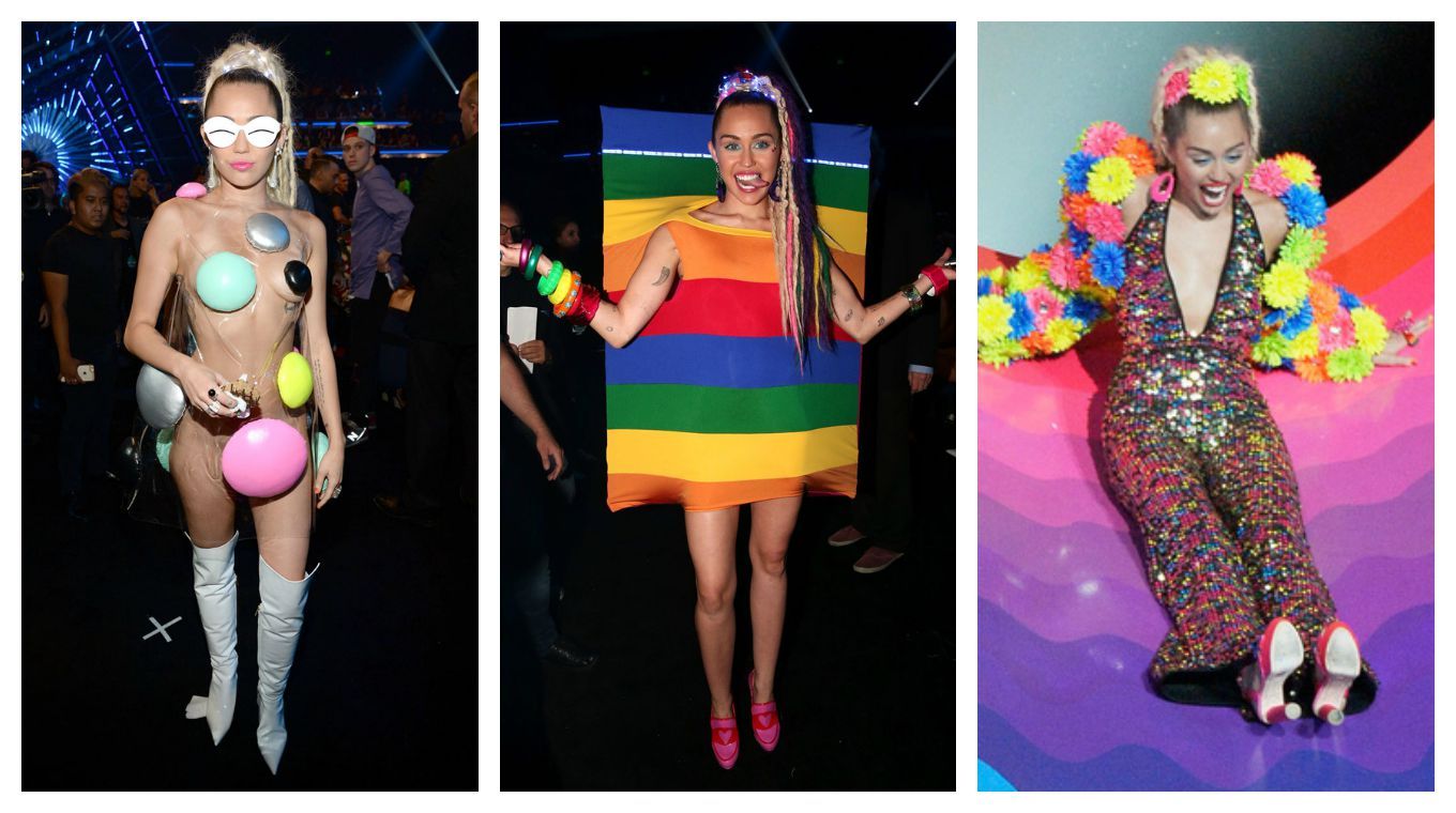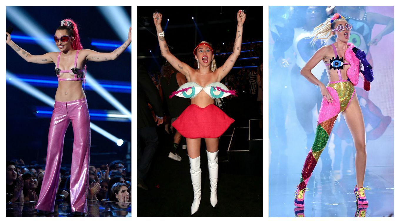 Creo que no hace falta aclarar que, apenas se anunció a Miley como la host de la noche, ya sabíamos que los looks iban a ser bizarros y polémicos como mínimo. Y como siempre, no decepcionó.