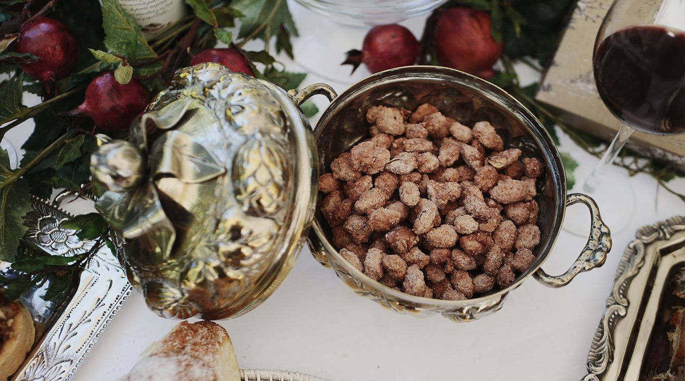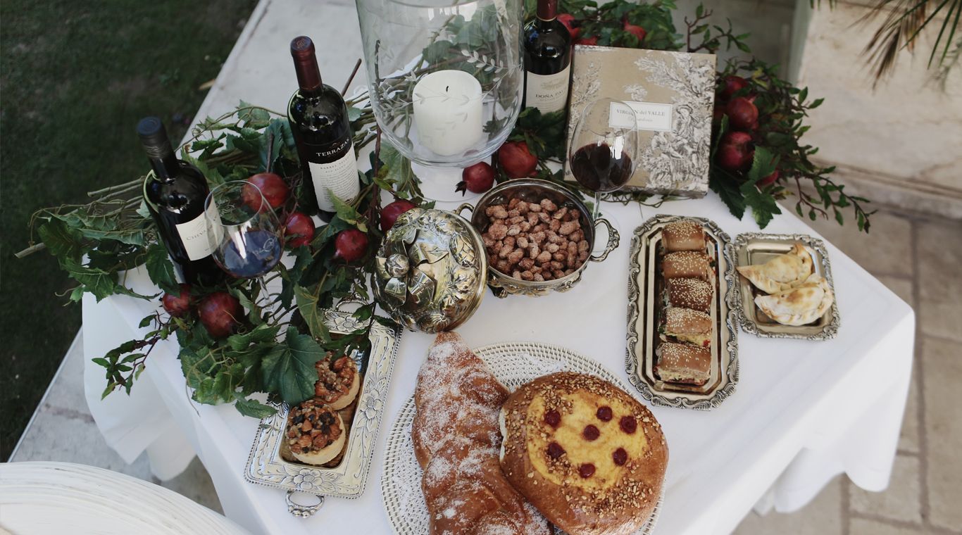 La mesa creada por Juan Pablo Marchionni está inspirada en una Navidad más criolla, en una bodega o una chacra. Tiene un mantel de lino blanco, piezas de platería criolla, la repostería más tradicional de Argentina: trenza de coco y pan de leche con dulce de alcayota y crema pastelera, chips de jamón crudo y rúcula, empanadas criollas, y garrapiñada de almendras.