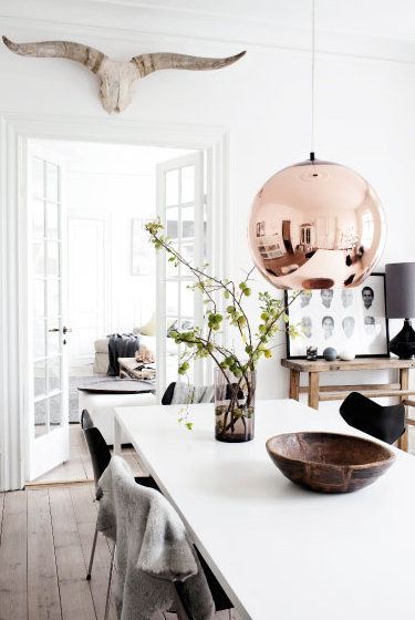 Son tenencia detalles en cobre, como elementos decorativos lámparas o centros de mesa. ¡Mirá plantitas mini y arbolitos de interior!