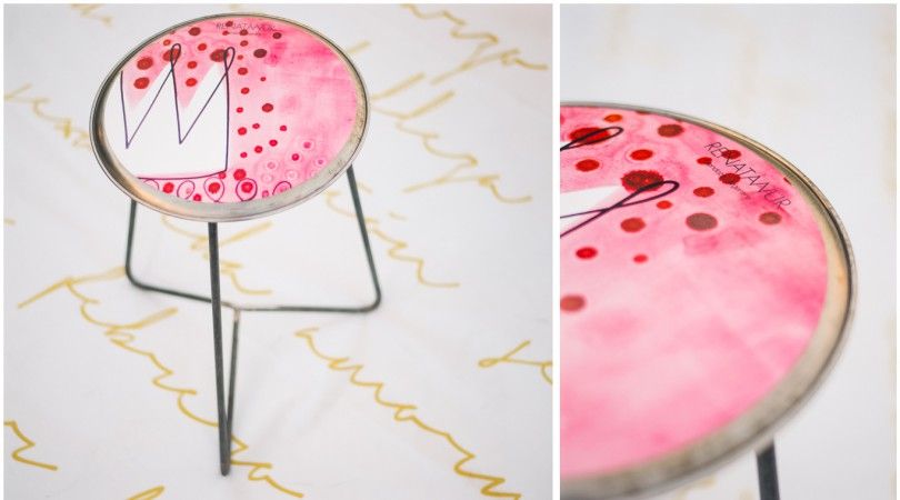 Como ya te habíamos contado, en todos los Encuentros regalamos un elemento ploteado con la obra de Renata Würschmidt que atraviesa y da cohesión a nuestros eventos. El banco de 72 diseño exterior, de Carla Perin, ploteado con la obra de Würschmidt.