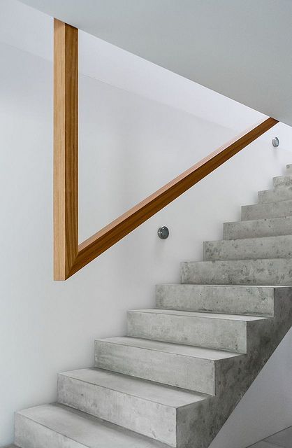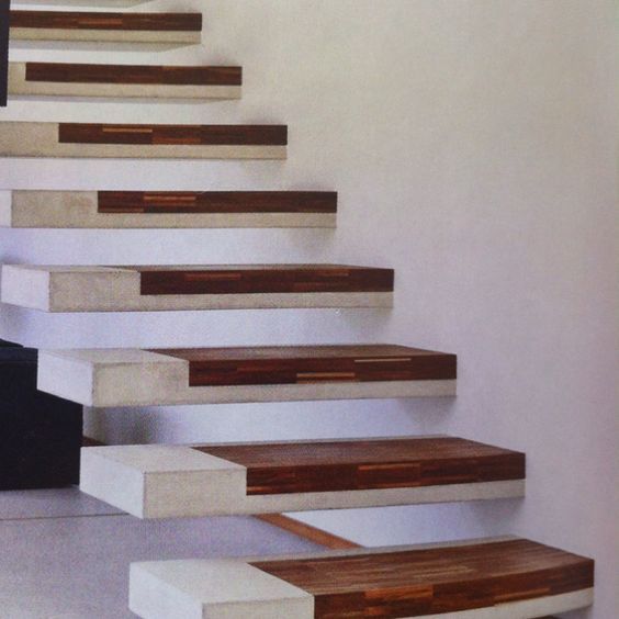 También es una buena idea el de mezclar la huella (escalón) de la escalera con hormigón. Esta vez no como tapa sino como parte de un solo elemento. Nos parece interesante que dos materiales completamente distintos puedan estar en una sola pieza.