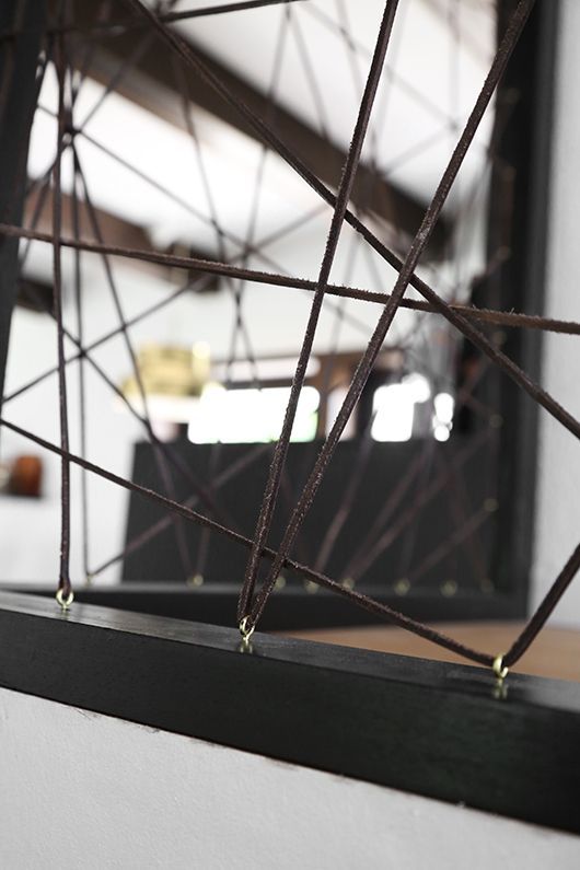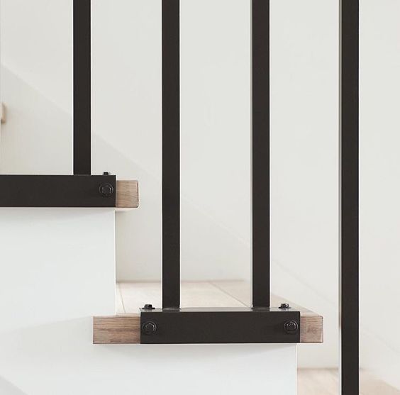 Para los que no son tan minimalistas, esta es una variante. En este caso no se está usando para sostener. Los tirantes son más anchos, de hecho contrastan con el color de los escalones y del muro lo que hace que queden en evidencia en el diseño.