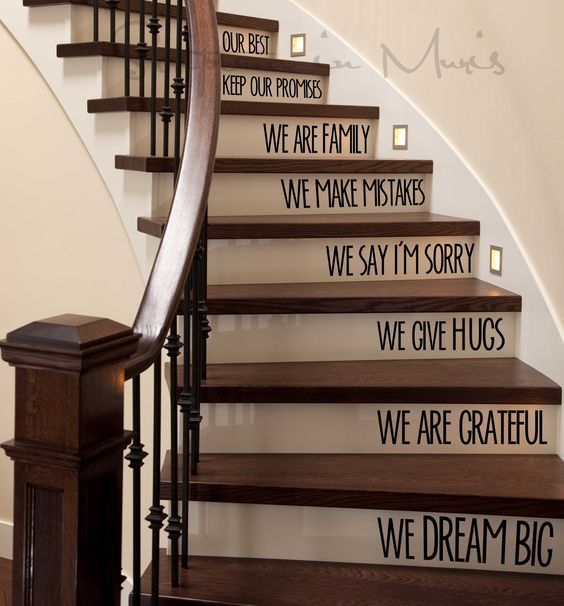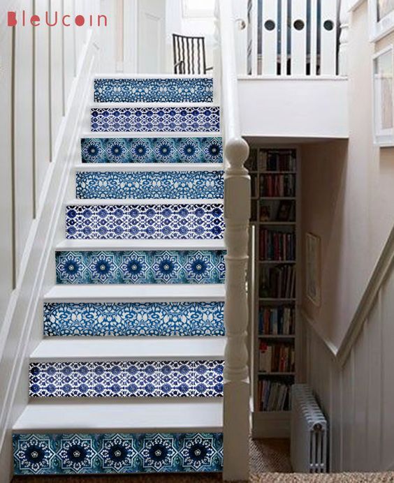 Pintarlas de un color claro y aplicarle en la contrahuella motivos de colores que más te gusten. El secreto para esto es usar vinilos, ya que los pegas y despegas de forma fácil. Cuando te cansás podés cambiar el diseño y listo, no necesitás realizar obra y es más barato.