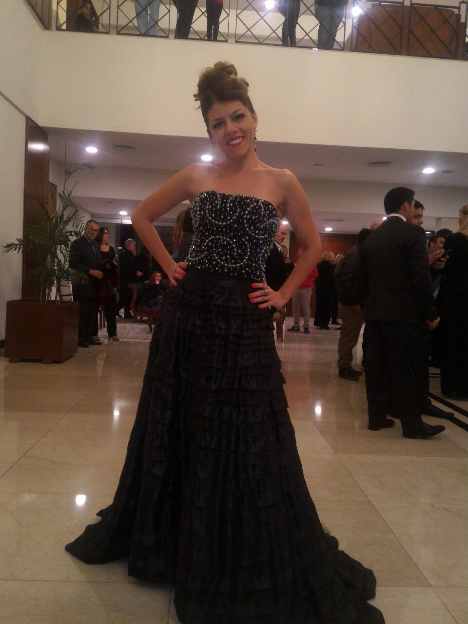 Melisa Stopansky fue asesorada por el famoso diseñador mendocino Alejandro Ferraro. Quien eligió para la productora un vestido negro con un impresionante bordado en la parte superior.