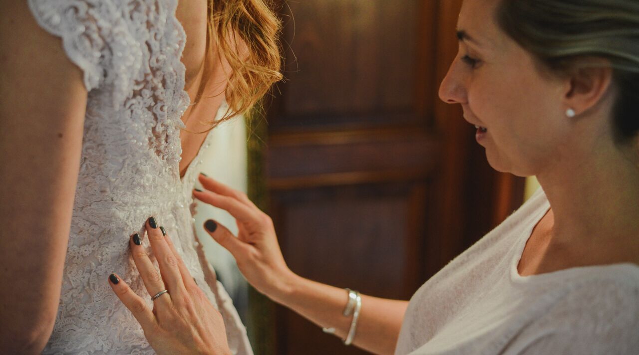 Me encanta ir al hotel el día del casamiento y ayudar a las novias a cambiarse. Mi servicio termina cuando ella queda en el altar: me gusta llevarlas del hotel a la iglesia. Además yo llego y es como que se tranquiliza la novia, soy como una suerte de psicóloga. Se crea un vínculo con ellas, porque pasás mucho tiempo juntas.