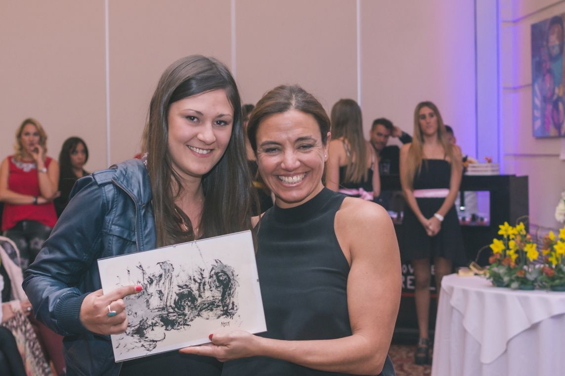 Además del stand up, las invitadas se fueron con las manos llenas: aparte de los usuales regalos que siempre sorteamos en Encuentro, esta vez le pusimos un toque artístico y rifamos 5 cuadros de los artistas plásticos mendocinos Renata Würschmidt, Silvia Basso, Martín Rodríguez, Marcelo Von der Heyde y Leira Abot. Las ganadoras, ¡felices! ¡Una de las ganadoras de las 5 obras que sorteamos!