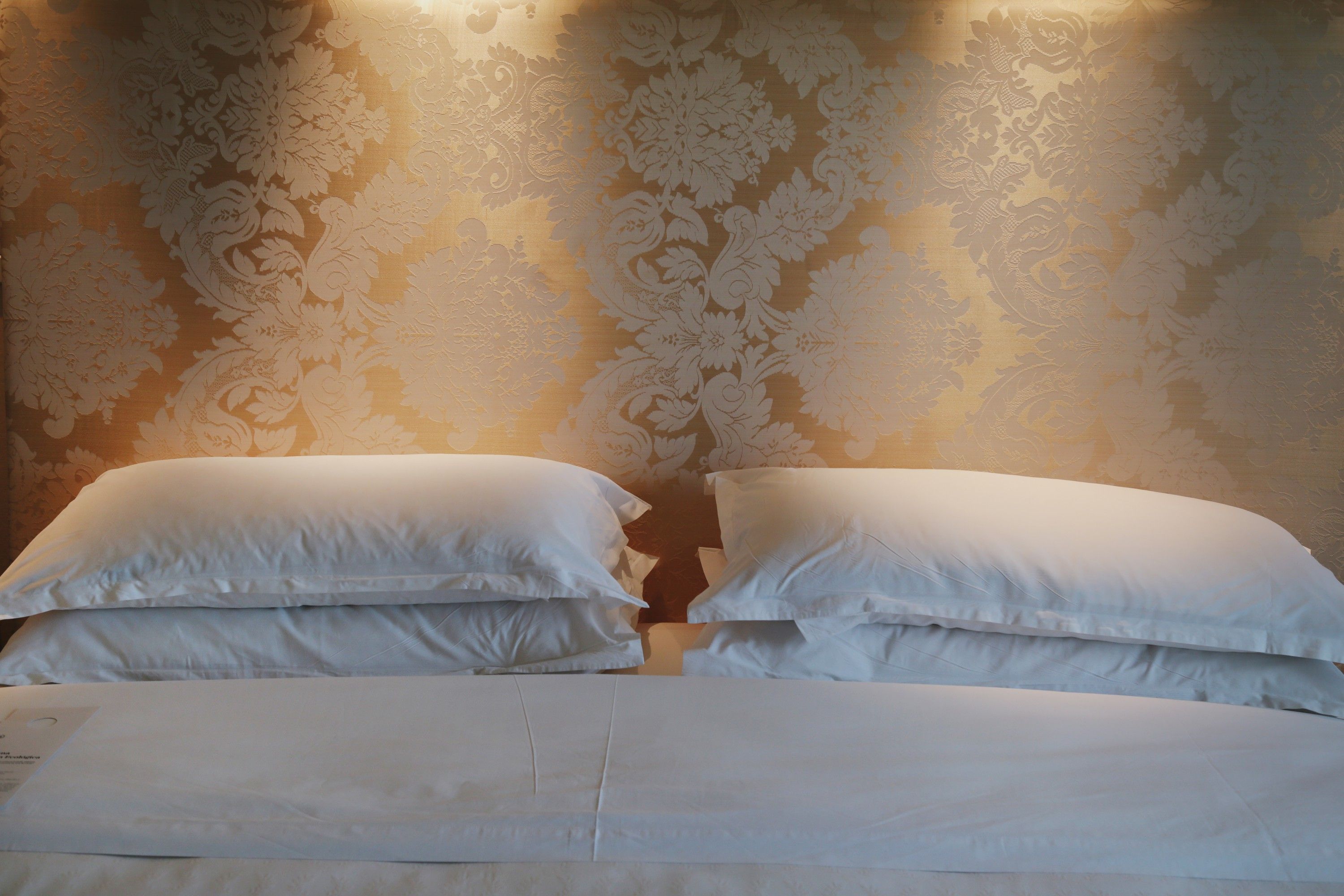 La habitación está diseñada con el mismo estilo de muebles que el resto de la suite, la diferencia radica en el empapelado, que tiene dibujos.