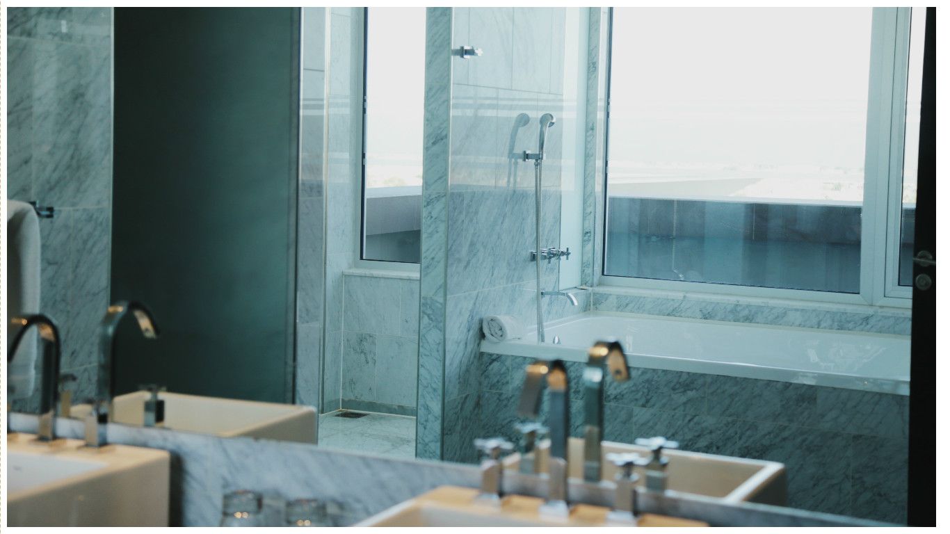 El baño es muy iluminado en comparación al resto de la habitación. Diseñado en su mayoría con mármol y sumado al ingreso de luz natural a través de grandes ventanales, ilumina y aclara el ambiente.