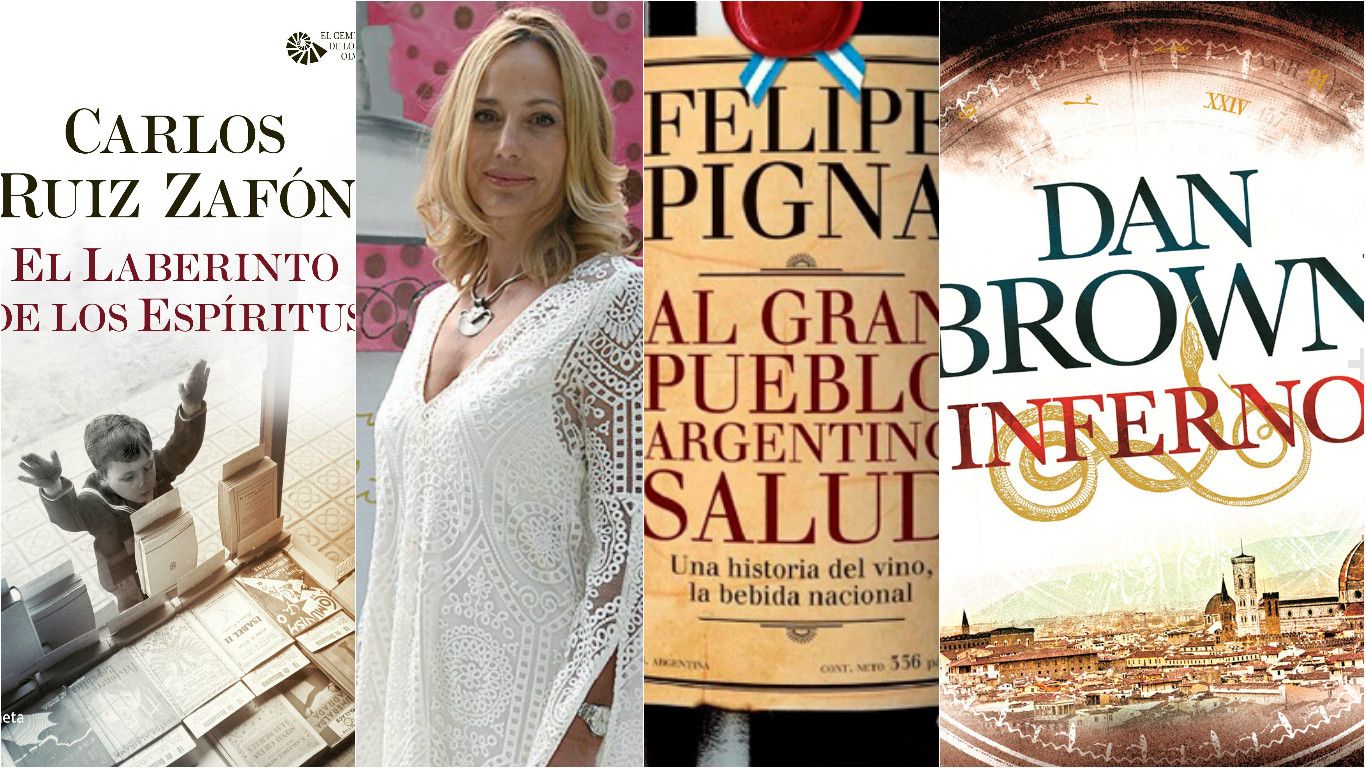 "El laberinto de los espíritus", Ruíz Zafón. "Al gran pueblo argentino salud" de Felipe Pigna y el ultimo de Dan Brown "Inferno".