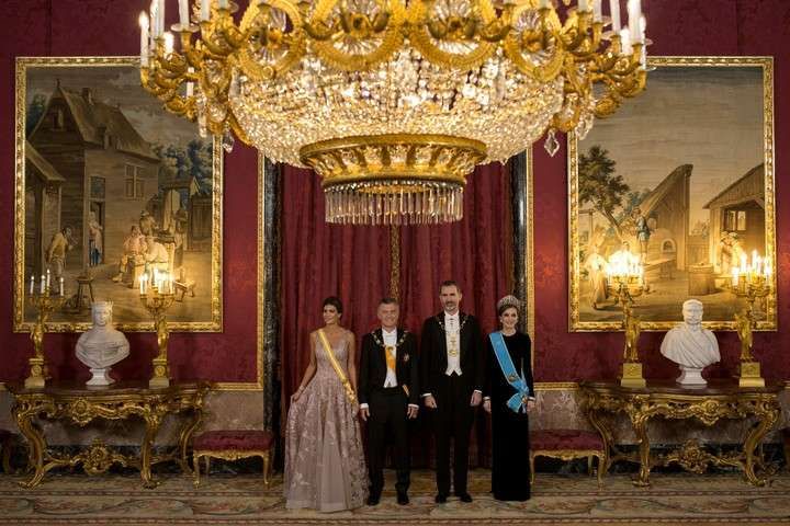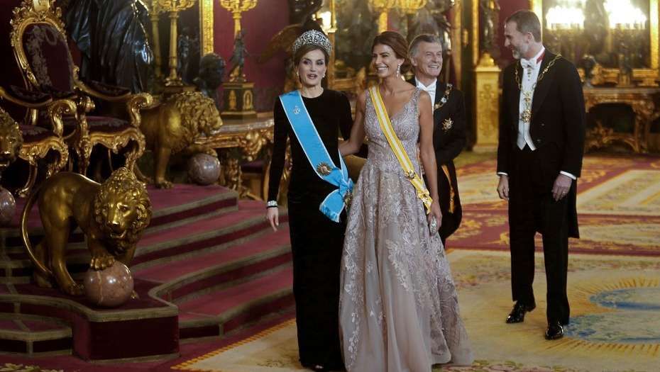 Este era uno de los momentos más esperados, y tanto Juliana como Letizia cumplieron con las expectativas. Awada estuvo regia y femenina con un vestido escote en V de falda campana hecho a medida por el diseñador argentino Gabriel Lage, con transparencias y bordado con cristales Swarovski, al que accesorizó con pendientes también de Swarovski y sobre hecho a medida.