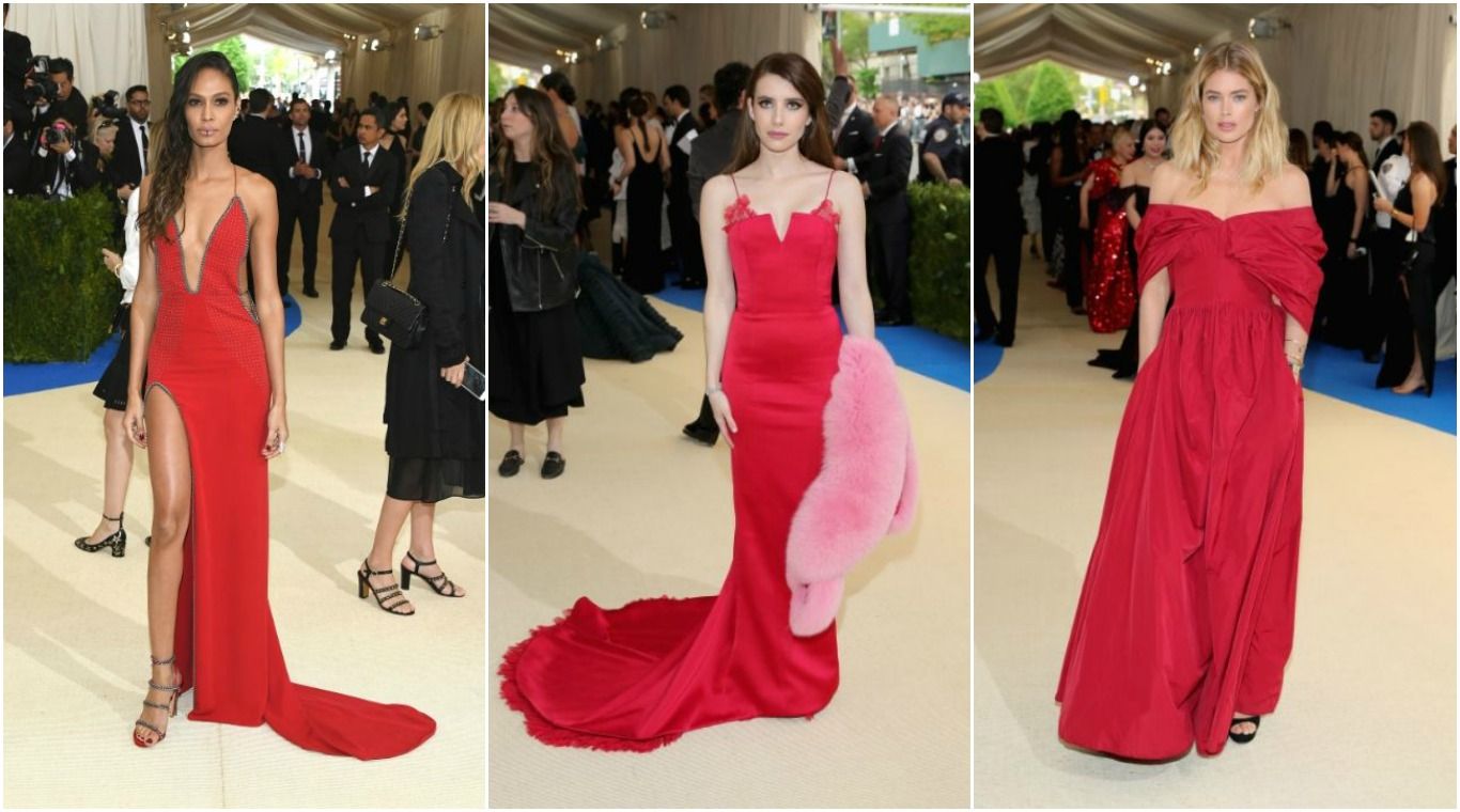 Los siguientes looks estuvieron acertados para la gala, aunque no explotaron el potencial de innovación que la noche ofrecía. Joan Smalls, Emma Roberts y Doutzen Kroes, todas de rojo. Dakota Fanning (en Miu Miu), Felicity Jones y Gisele Bündchen (Stella McCartney a medida). Allison Williams, Evan Rachel Wood (en Altuzarra) y Emily Ratajkowski (en Marc Jacobs). Elizabeth Banks, Blake Lively y Aymeline Valade. Selena Gomez (en Coach), Bee Shaffer y Candice Swanepoel. Tracee Ellis Ross, Reese Witherspoon y Adriana Lima. Riley Keough (en Louis Vuitton), Natasha Poly y Karlie Kloss. Kim Kardashian (en Vivienne Westwood), Gwyneth Paltrow (Calvin Klein) y Kylie Jenner (en Versace). Anna Wintour -anfitriona de la noche, en Chanel-, Jennifer Lopez (en Valentino) y Mary-Kate y Ashley Olsen. Naomi Campbell, Miranda Kerr y Alexa Chung. Lupita Nyong'o (en Prada), Mandy Moore y Lily-Rose Depp (en Chanel).