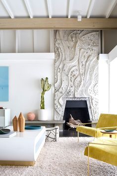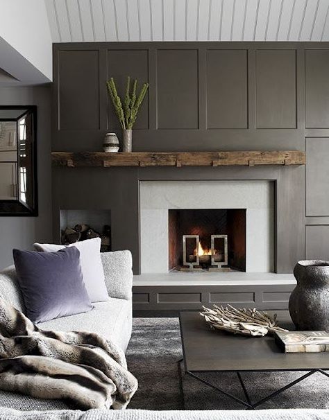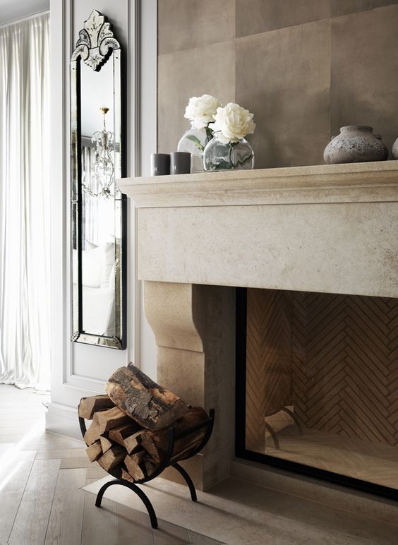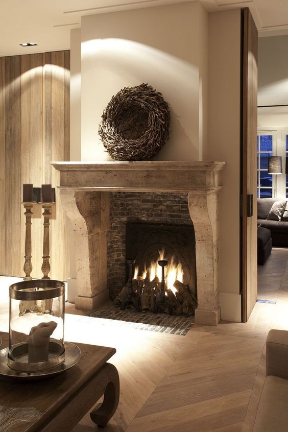En el siguiente espacio, distinto a la anterior, hay mucho trabajo decorativo en la zona de la chimenea, haciéndola el centro de atención de forma diferente.