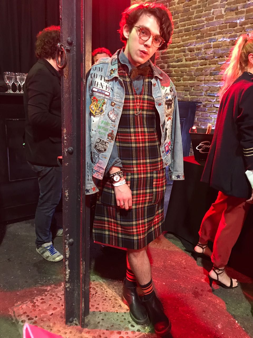 Murilo Brito deslumbró en La Rural con su vestido tartán y su chaqueta denim bordada.