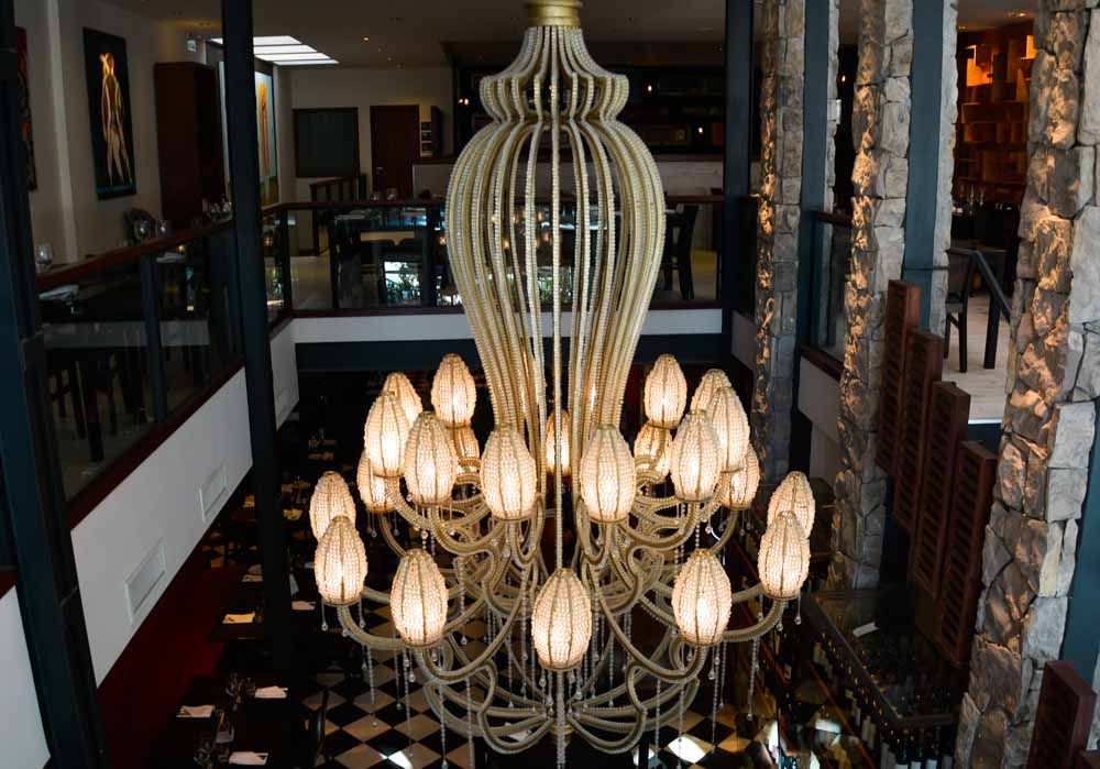 Otra, es la forma en la que ha sido iluminada. Hay una enorme lámpara colgante en el medio del espacio. Sin duda, un gran acierto la elección de la luminaria en todo el restaurante.