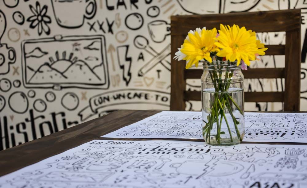 Y por último, este lugar que nos cautivó por los mensajes en su mural. Que asimismo mantiene esa imagen en sus individuales. Mensajes amigables relacionados con nuestra cultura de la comida, como por ejemplo: