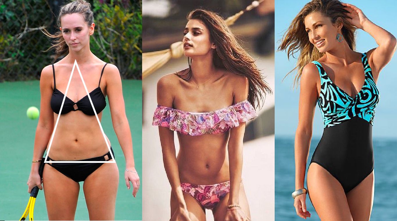 Triángulo invertido: a la inversa de triángulo, tiene caderas pequeñas y espalda ancha. ¿Detalles? Sí, pero sólo en caderas, el objetivo es generar el volumen que éstas no tienen. No son recomendable los trajes de baño strapless, ópticamente dan la sensación de ensanchar aún más hombros y espalda.