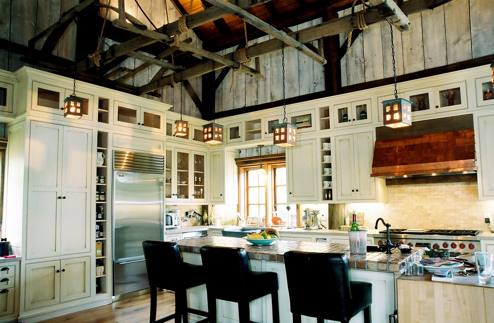 Este es un estilo que permite el uso de tres (o más) tipos de revestimientos en un mismo ambiente. Es así como la madera puede convivir con piedra y ladrillo o adobe sin problemas, haciendo que las paredes, pisos y techos de la cocina presenten texturas y colores diversos.