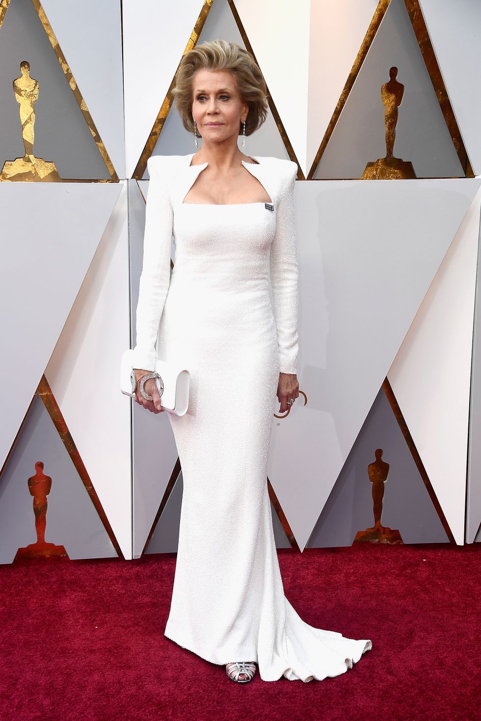 Jane Fonda - Balmain a medida, joyas de Chopard y zapatos de Salvatore Ferragamo