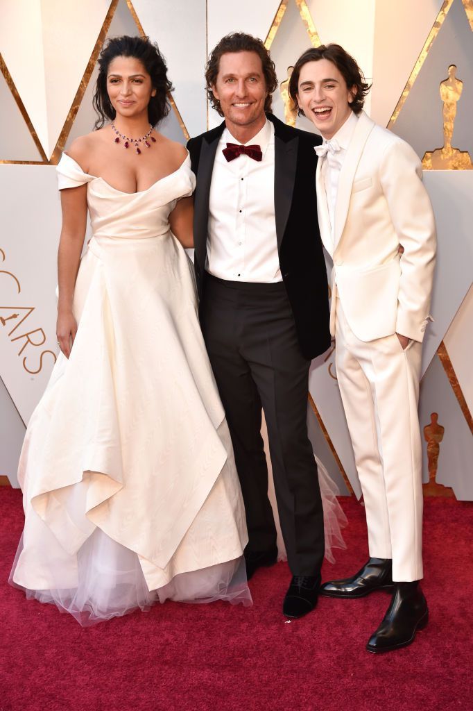 Camila Alves, Matthew McConaughey, y Timothée Chalamet (Berluti)