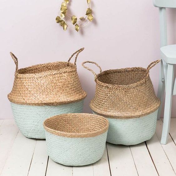Puede que los veamos como los que utilizaban nuestras abuelas. Pero hay algo que los distingue y hace también populares son los cestos pintados usando varios colores. Por ejemplo, en blanco y dorados, aunque los pasteles, verde menta, rosa, celeste son los must de la temporada.